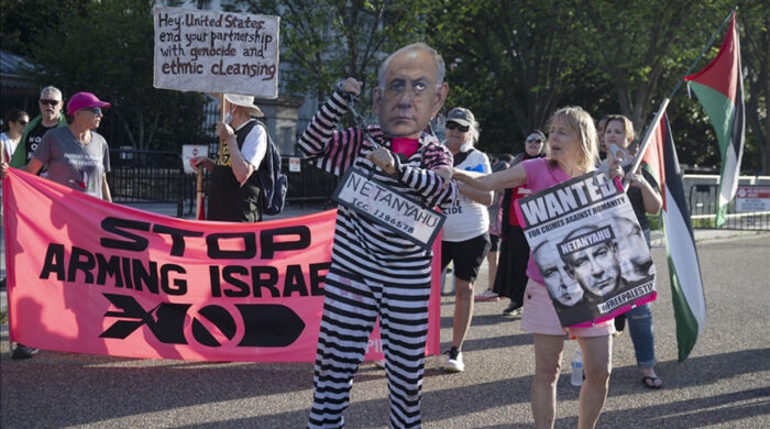 যুক্তরাষ্ট্রের প্রেসিডেন্ট ডোনাল্ড ট্রাম্পের সঙ্গে বৈঠক করতে আসছেন ইসরায়েলের প্রধানমন্ত্রী বেঞ্জামিন নেতানিয়াহু— এ খবর জানতে পেরে মার্কিন প্রেসিডেন্টের সরকারি বাসভবন হোয়াইট হাউসের বাইরে জড়ো হচ্ছেন ফিলিস্তিনপন্থি আন্দোলনকারীরা।