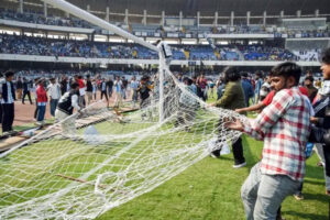 লিওনেল মেসিকে এক ঝলক দেখার জন্য কার্যত উন্মত্ত হয়ে ওঠেন দর্শকরা। উদ্যোক্তাদের বিরুদ্ধে ক্ষোভ প্রকাশ করতে থাকেন তারা। পরিস্থিতি আঁচ করে এসময় মেসিকে মাঠের বাইরে নিয়ে যাওয়া হয়। এরপর কার্যত রণক্ষেত্র হয়ে ওঠে স্টেডিয়াম। গ্যালারি থেকে আরো বেশি সংখ্যক প্লাস্টিকের বোতল উড়ে আসতে থাকে। আসন ভাঙচুর করা হয় এবং তা গ্যালারি থেকে মাঠের দিকে ছোঁড়া হয়। ফেন্সিং ভেঙে মাঠে ঢুকে পড়েন অসংখ্য মানুষ। পরিস্থিতি সামলাতে নামাতে হয় র্যাফ। অভিযোগ উঠেছে, বিশৃঙ্খলার কারণে সময়ের আগেই মেসিকে সরিয়ে নিয়ে যাওয়ায় শাহরুখ খান মাঠে প্রবেশ করতে পারেননি। অন্যদিকে স্টেডিয়ামের উদ্দেশে রওনা হয়েও ফিরে যেতে হয় মুখ্যমন্ত্রীকে।