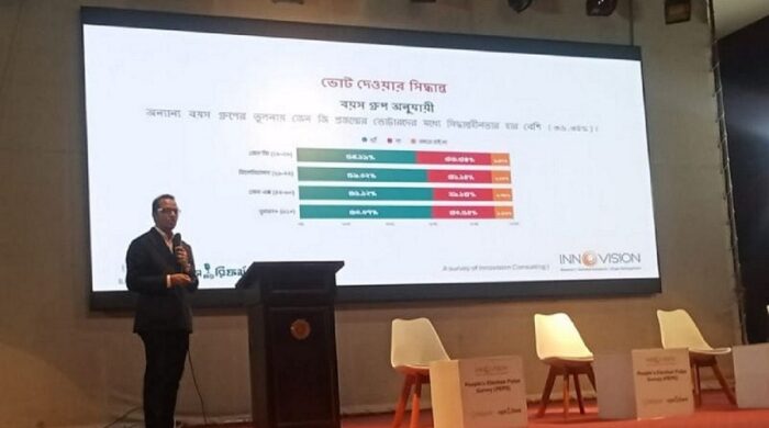 এশিয়ানপোস্ট ডেস্কঃ বিচারের পর আওয়ামী লীগকে সুযোগ দেওয়ার পক্ষে ৪৫ শতাংশ জনগণের নির্বাচন ভাবনা জানতে চালানো একটি জরিপের ফলাফল প্রকাশ করেছে পরামর্শক প্রতিষ্ঠান ইনোভিশন কনসাল্টিং। জরিপে অংশগ্রহণকারীদের মধ্যে ৪০ শতাংশ
