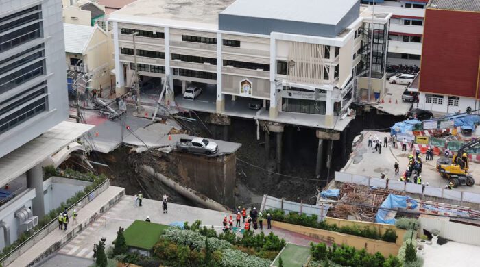 আন্তর্জাতিক ডেস্কঃ থাইল্যান্ডের রাজধানী ব্যাংককে সামসেন রোডের একটি অংশ দেবে গেছে। এতে করে ভাজিরা হাসপাতালের সামনে ১৬০ ফুট গভীর একটি গর্তের সৃষ্টি হয়েছে। তবে এ ঘটনায় কেউ হতাহত হননি। বুধবার